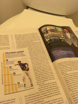 S.I. led off with Jerry Dipoto in his office (same place where he called Theo Epstein to make a deal for that big German dude) in front of a library that, portentiously, includes The Subtle Art of Not Giving a F***.